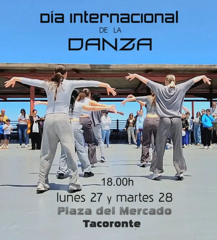 Event: Celebration of the International Day of the DANZA by the Tacoronte School of Dance. Location: Plaza del Mercado de Tacoronte. Date: April 27, 2026. Time: - 18:00–19:00: Celebration of dance. Free admission. General public.