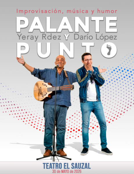 Sinopsis: Un espectáculo que une música, improvisación y humor en un mismo escenario. Darío López y Yeray Rodríguez se encuentran para dar forma a una propuesta única: La mirada cómica y cercana de Darío. El arte de la improvisación en décimas de Yeray. Una banda en directo que actualiza lo tradicional con un sonido fresco y contemporáneo.