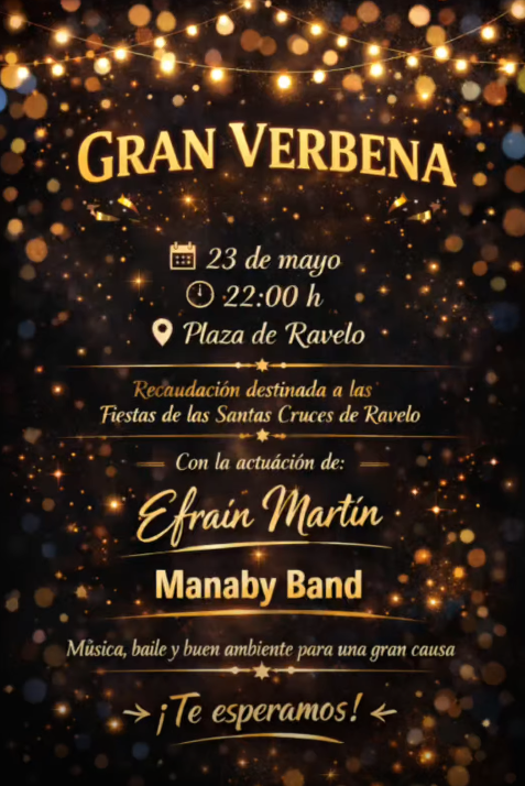 Jour: Samedi 23 mai 2026\nHeure: 22h00\nLieu: Plaza del barrio de Ravelo, El Sauzal (Tenerife)\nPerformances/line-up: Efraín Martín et Manabu Band\nOrganise: Commission des Fêtes de Ravelo\nPrix: Gratuit\n\nHoraires/line-up détaillé\n22:00 Efraín Martín et Manabu Band