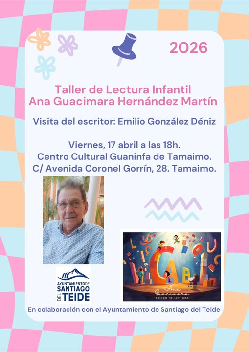 Майстерня читання Ana Guacimara Hernández Martín, у співпраці з Emilio González Deníz, має у п'ятницю, 17 квітня дуже особливий візит: гран-канарський письменник Emilio González Deníz. Це можливість для найменших та їхніх сімей наблизитися до світу книжок творчо та весело.